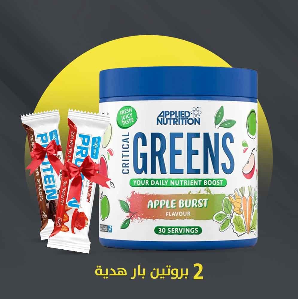 Critical Greens متوفر بنكهة APPLE BURST اللذيذة، مما يجعله سهل الاستخدام وممتعًا.