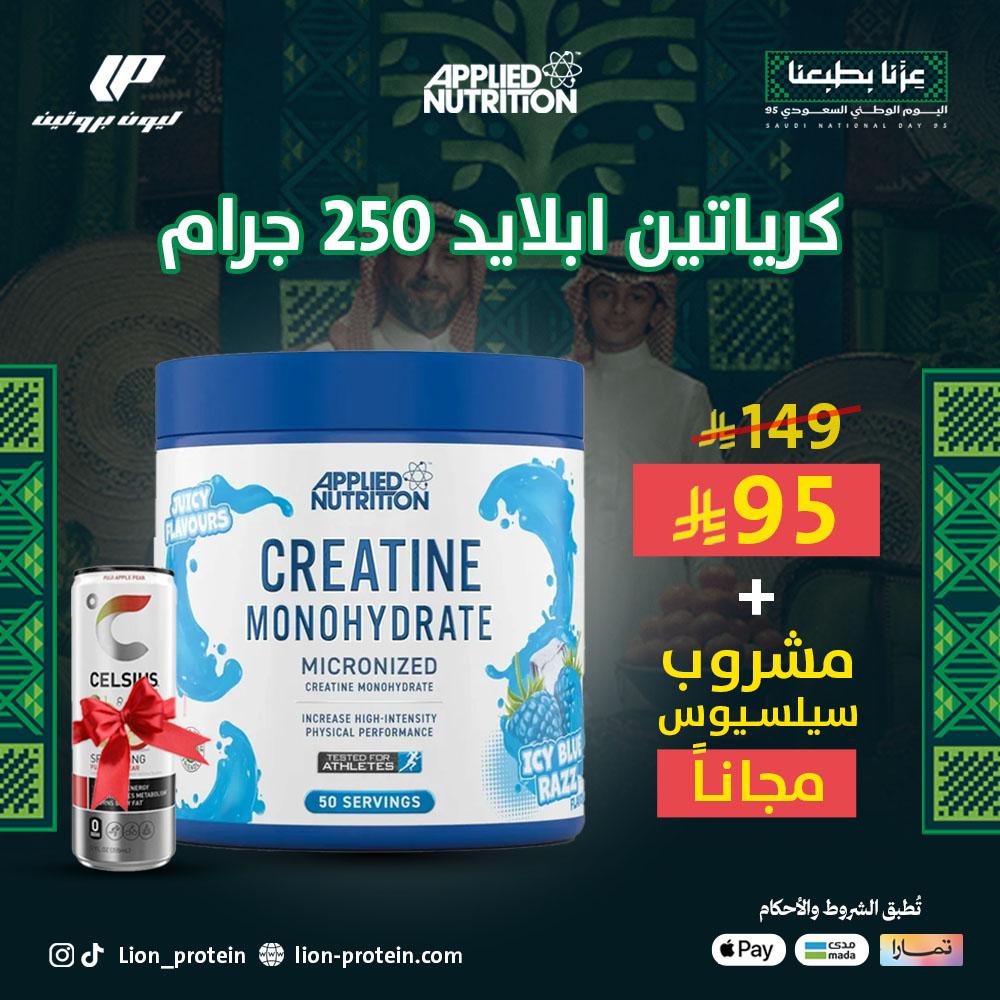 كرياتين مونوهيدرات ابلايد نيوترشن نكهه توت ازرق 250 جرام + 1 مشروب سيلسيوس